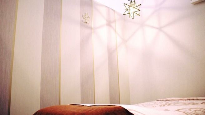 施術ルームは星のペンダントライト、ボーダーの壁紙