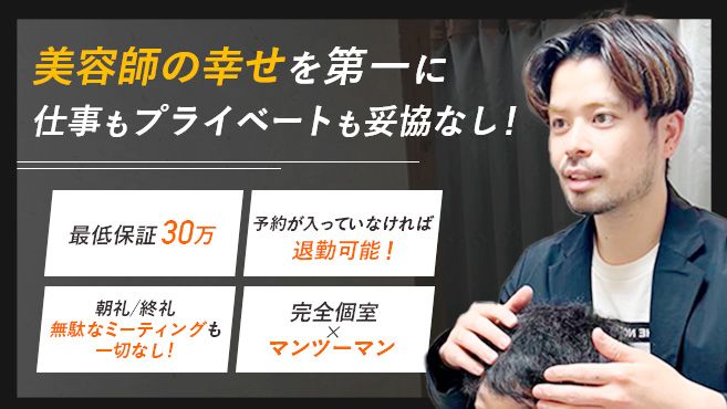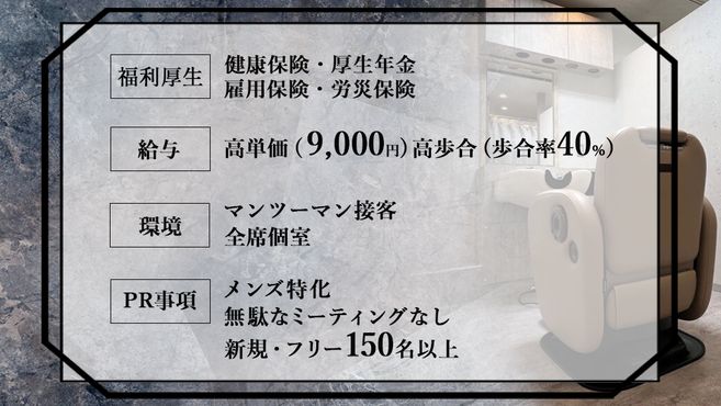前職では女性客が多く、自分の強みをうまく活かせず、指名も売上も伸び悩んでいました。しかし、メンズ専門という明確なターゲットと男性客に特化した技術や接客のノウハウを学ぶことで、前職よりも技術も上がりお給料もUPすることができました!