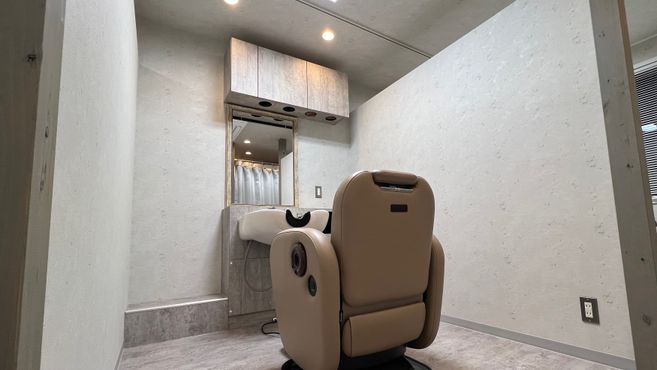 4つの完全個室にはすべてシャンプー台を完備しており、