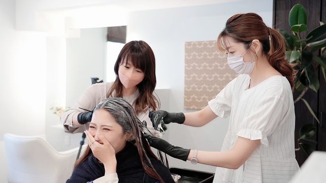 施術では髪へのダメージを最小限に抑えることを意識しており、ヘアケア剤やトリートメントを組み合わせながら美しい仕上がりを目指します。お客様に喜んでもらえるカラーの持ちやツヤ感にこだわりながら、技術を磨くことができる環境です。