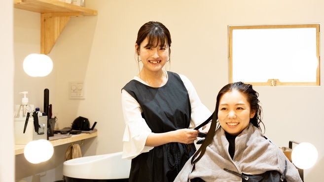 【スタッフYさんの声】お客さまにツヤツヤになったと言ってもらったり、髪のケアに興味を持って頂き喜んでもらえるのが嬉しいです。前のサロンから5年のブランクがあり、技術や集客面で不安もありました。集客ノルマもなく、お店のマニュアルもあるので安心ですが、やはり、最初はブランクもあるので戸惑うこともあったのですが、お店の方でしっかり細かく教えてもらえるので2〜3ヶ月でお客さまへの入客の経験も増えて自信を持って取組むことができています。不安があればすぐに質問ができる環境なので安心して働いています。そして、前のサロンでは、夜に勉強会がありその時間は時給が発生しなかったのですが、ツヤと髪crimでは、その時間もしっかり時給がでるし、お昼の時間にあるので、小学生の子供が2人いる私としては、勉強もしたいので環境的にもとてもありがたいです。あと、子供の行事でお休みがほしい時も、しっかり休みを取ることができるのでありがたいです。