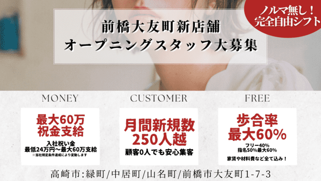 20代多数/30代多数/男性が多い/女性が多い/40代以上多数/ファミリー多数/新規フリー客多数