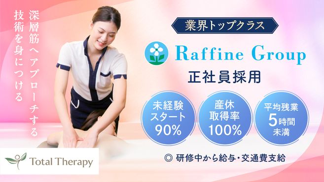 ラフィネで活躍しているセラピストの90%は未経験スタート。充実の研修があるから、一生もののスキルが身につきます。修了時には厚生労働大臣認可組合による公認セラピストとして認定を受けられます。