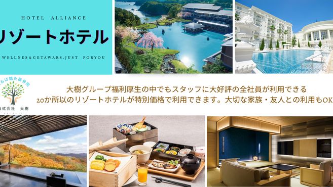 福利厚生で家族や友人と利用可能の有名ホテル提携!連休も習得可能なので大切な人とのひと時にぜひ使っていただきたいです★