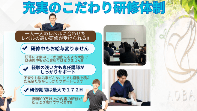 基本のメニューは身体の施術、美容の施術の基本2本柱で常に声がどこからか聞こえてくるような賑やかな院です。とにかくリピーター様が多くこれも患者様より高評価を受けているからこそなのだと思います♪期待されているからこそ今に満足せず良いものは残しながら施術、技術も常により良いサービスへとアップデートしながら磨き続けているのでそれが伝わり患者さんからもお褒めのお言葉もたくさん頂けるので何よりの私たちの力になりやりがいを感じながら業務に取り組むことが出来ています(^^♪