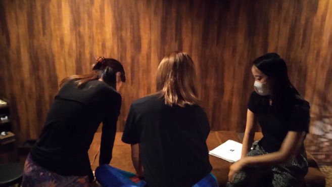 セラピスト同士でより気持ちがいい施術ができるように練習しています。