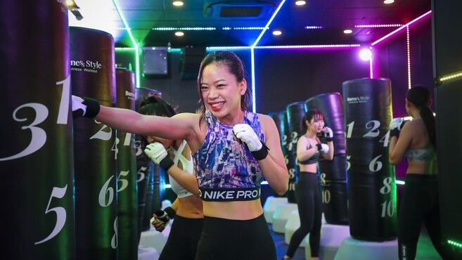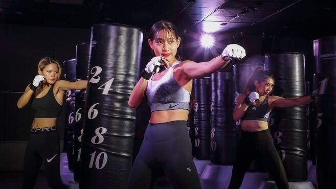 オリジナルサンドバッグを使用し、インストラクターは声と動きでレッスンを盛り上げます!