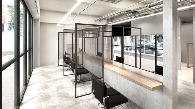 セット面6台、シャンプー台2台の落ち着いた雰囲気で清潔感のあるサロンです。