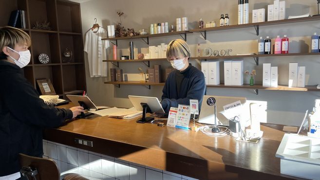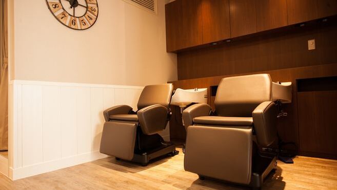優しいアイボリーと木目を基調とした落ち着いた印象のサロンです。地域密着なので和気あいあいな雰囲気ですよ^^