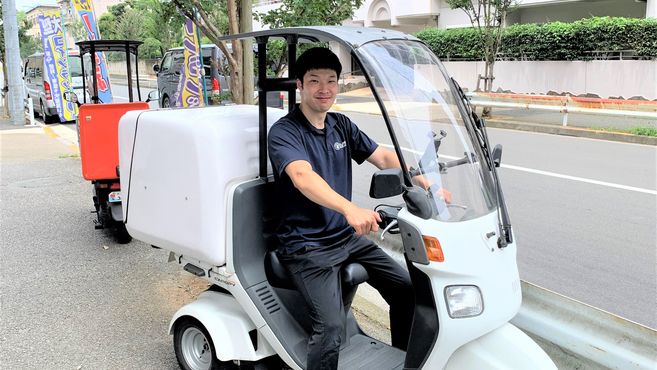 足立区・葛飾区に住んでいる常勤社員には、屋根付きバイクを貸与しバイク通勤いただいています。