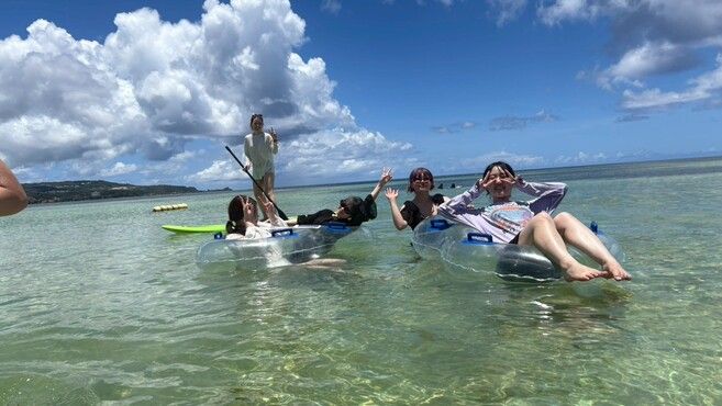 写真はグアムでの研修旅行のひとコマ*