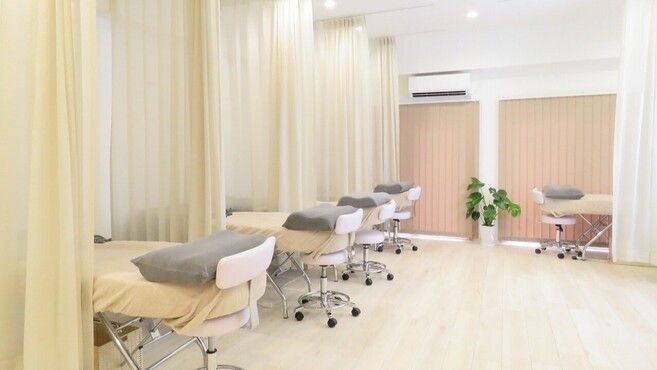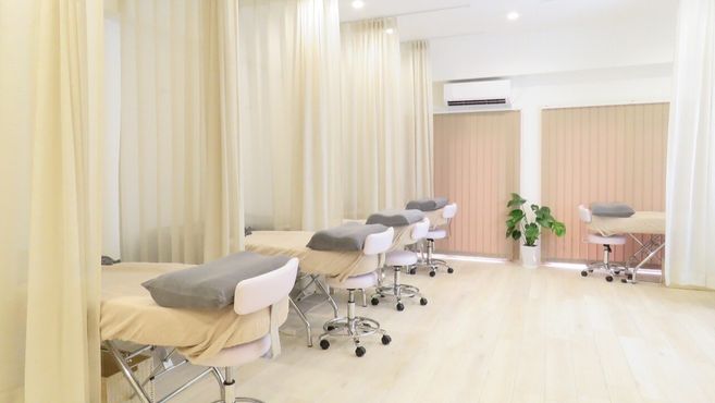 ナチュラルテイスト×パステルピンクのインテリアがステキなサロン♪ふんわりとしたカーテンで仕切られた半個室のプライベート空間がお客様はもちろんスタッフにも好評です☆