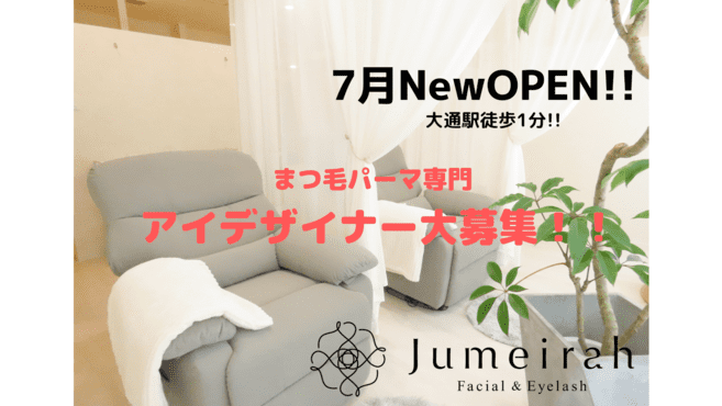 OPENスタッフ募集なので、スタートが皆さん一緒です。みんなで協力しながら、よりよいお店作りができるのも魅力で、皆さんが同時入社なので先輩後輩などあまりなく、楽しくお仕事ができる環境です♪大通駅から徒歩1分という通いやすい立地で集客も◎、又フェイシャルとまつげパーマという別ジャンルの専門店なので色々な分野の事も学べます。