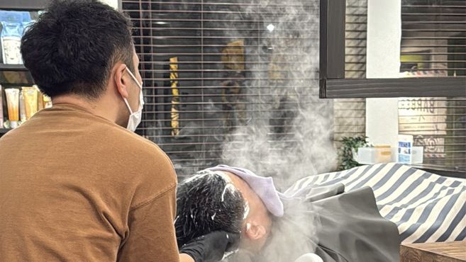 ヘッドスパや頭浸浴などのリラクゼーションメニューも好評で、理容室ならではの髭剃りから脱毛までトータルで整えられるのが特徴です。