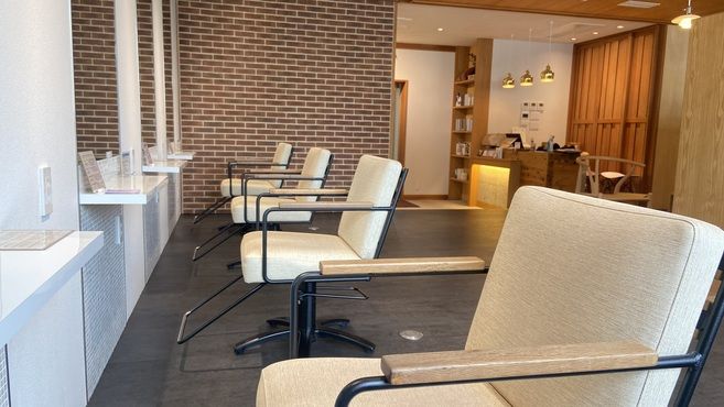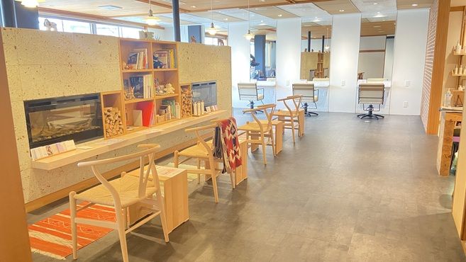 サロンの内装は北欧風の店内で木材が多く使用され、壁や天井にある珪藻土によって、薬剤などの匂いから守り、快適に過ごせる工夫がされているのでお客様は勿論、スタッフも心地よく働くことが出来ています♪