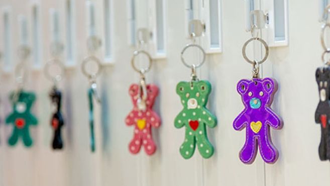 かわいらしいキーホルダーがお客様をお迎え。