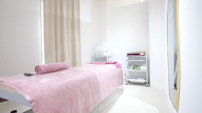 恵比寿駅西口を出て右手にソフトバンクがある横断歩道を渡りまっすぐ進むと、5差路が出てきて、6角形の白の建物が右手に見えてきます。一階はBAKUROUというお店です。階段上にエレベーターがあるのでそこで6階を押していただいたらサロンになります。