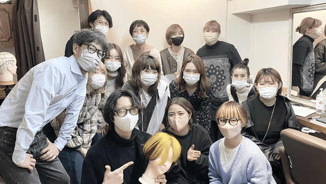 DEグループならでは。それぞれスタッフが得意な技術を披露して教えて行きます。アシスタントからベテランまで。スタッフ同士としての学びの場。スタッフ同士で楽しんでいます!中には学校の講師も務めていたり芸能人のヘアメイクを手がけるスタッフも!講師=外部講師の常識を大きく飛び出しています!(パーマ、メンズカット、ヘッドスパ、200万スタイリストの講義、ヘアメイクetc)