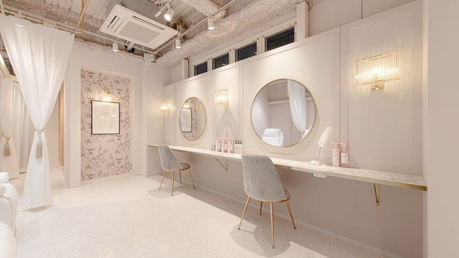 海外のホテル☆をコンセプトとした大理石とくすみピンクを基調とした店内♪