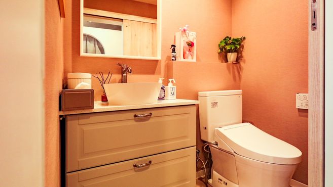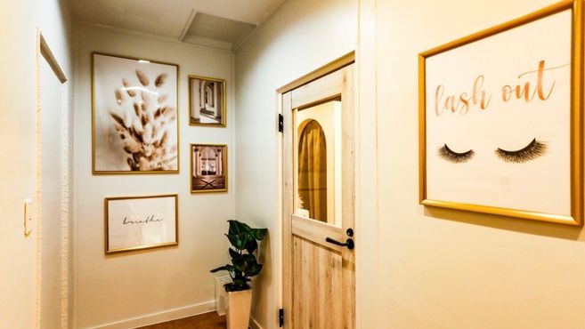 入口ドアを開けると、くすみピンクとグレージュを基調とした内装で、非日常を味わっていただけるような雰囲気の内装です♡