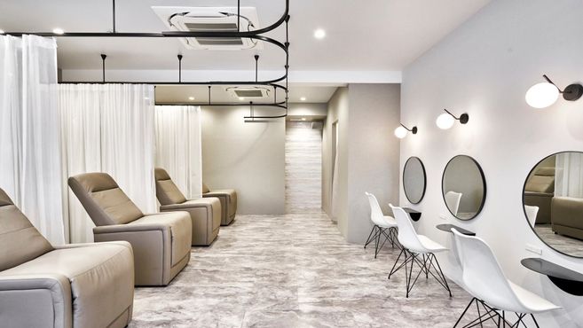 明るくアットホームな雰囲気のサロンで、スタッフ同士の距離が近く、相談しやすい環境です。お客様に安心して施術を受けていただくため、店内は落ち着いた雰囲気で統一されています。