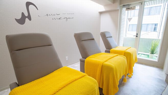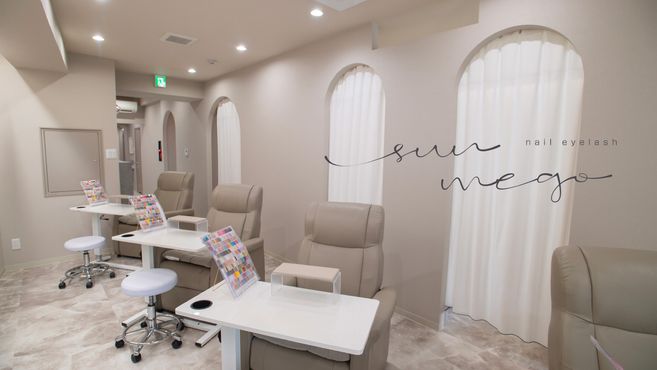 ネイルサロン併設。グループ会社の中でも客単価、デザイン力の高いスタッフが揃うサロンにアイラッシュサロンを併設し5月にリニューアルしました!内装がすごくおしゃれと人気のサロンです☆