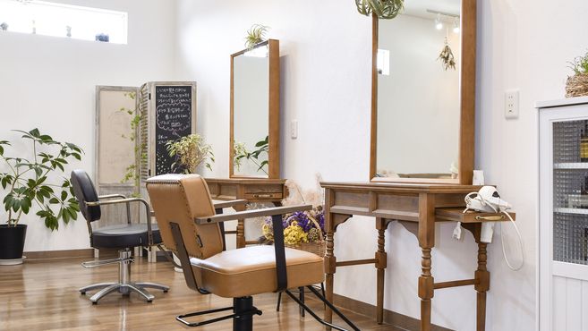 中和幹線(大きな道路)沿いの住宅の多い地域にあるナチュラルな可愛い美容室です。ファミリーでの顧客も多いので様々な年代のお客様が来店してくださいます。スタッフもほんわかした雰囲気です。