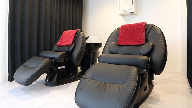 座りながらシャンプーできるので施術者の負担も軽くより仕事が楽しめるようにしております☆