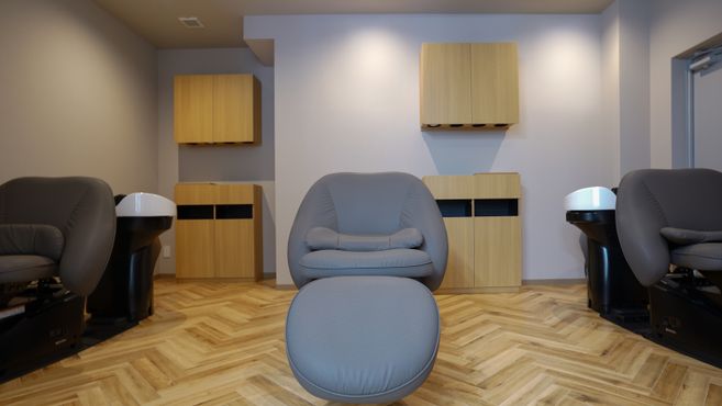 薬園台駅徒歩2分と駅近で、白、グレイ、ウッド調、ゴールドを基調とした半個室のゆったりとしたアットホームなサロンです。