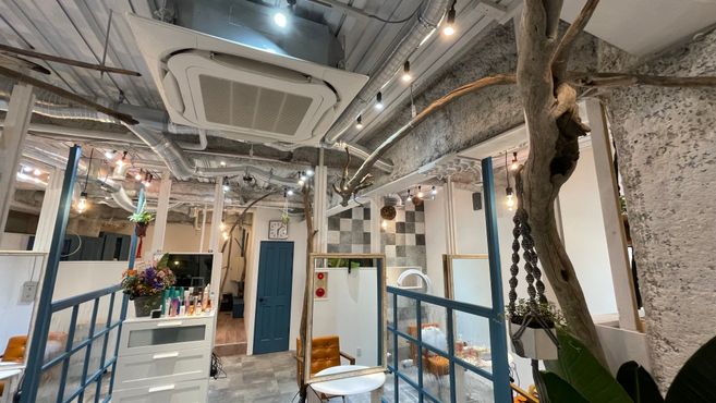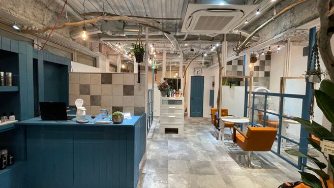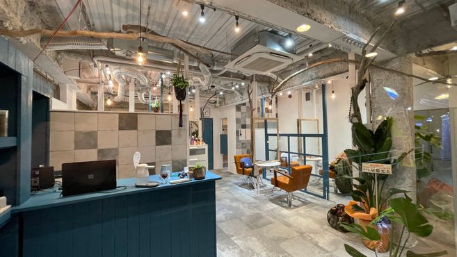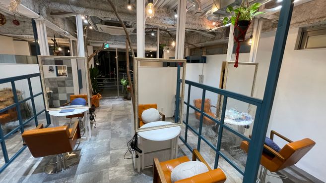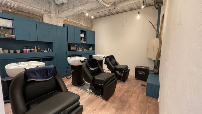 広々とした空間に、グレー×ロイヤルブルーの差し色がおしゃれな店内☆半個室のような仕切りがあるので、周りを気にせずゆったり過ごせます♪デザインも空間もセンスを感じる居心地の良いサロンです^^