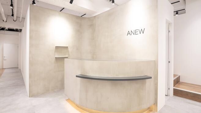 大宮東口を出て駅前大通り沿いを直進し,信号を越えて『大宮門街』という大きいビル沿いにそのまま真っ直ぐ進み、『りそな銀行』のある交差点を左折。1つ目の十字路を右折し、マルエツの道に入ります。ラーメン屋ミンミンのY字路を左へ進み、少し直進します。右手に立体駐車場のある小道を右に進み2階『ANEW』です