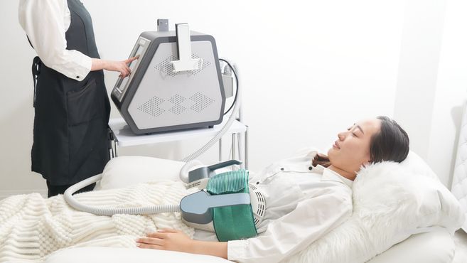 今話題のクロスフィットトレーニングを手軽におこなえる高密度集点式電磁波マシン『ビートマスター』服の上から施術出来る!従来のEMSより7倍深い、皮下7センチまで電磁波が到達します。筋肉の最深部を強制的に刺激、収縮させることで、効率的かつスピーディーに筋力を強化、30分間の施術でスクワットや腹筋運動2~5万回の運動量に相当!筋肉の超極大筋収縮により、頑固な脂肪細胞の数を減少する効果も!インナーマッスルが鍛えられるので、基礎代謝量が増えて脂肪燃焼を活発化させ、太りにくく痩せやすい体質に導きます。