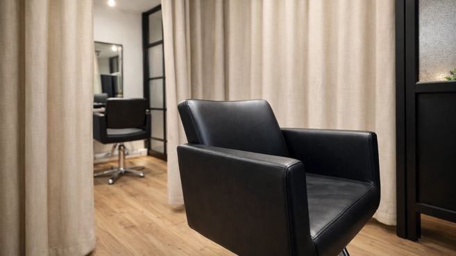 施術中はカーテンを開けて開放的に使うこともできますが、必要に応じて閉めることで、周囲の視線を気にせず落ち着いて施術できる環境をつくることができます。お客様同士の視線が合いにくいため、リラックスして過ごしていただけるだけでなく、スタイリスト自身も目の前のお客様に集中しやすい空間です。
