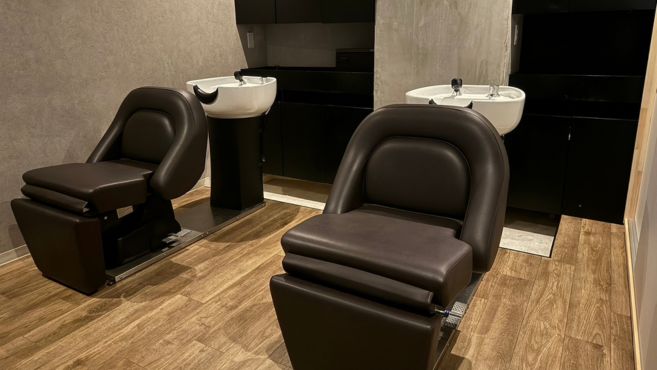 フルフラットなシャンプー台で首の負担なくリラックスできると高評価。