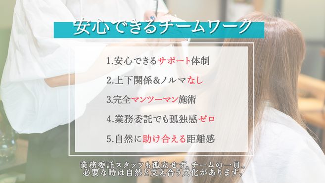 私たちは、**「長く安心して続けられる美容師人生」**を一緒に考えるサロンです。