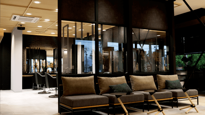 広く落ち着いたシックなデザインの店内でお客様にリラックスと新しい自分をご提案します。