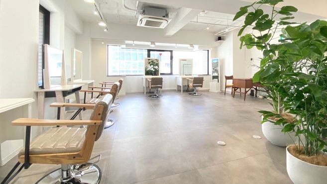 恵比寿駅と代官山駅のちょうど真ん中の便利な立地。ハイセンスなショップ、カフェやレストランも沢山有り美容室帰りの楽しみが付加価値になる様なエリアですが、一歩サロンに入ると自然光が柔らかな静かでのどかな雰囲気です。
