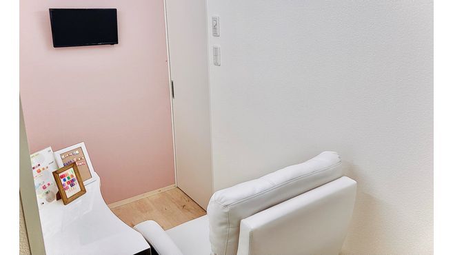 柔らかい照明やピンクの壁で可愛らしく、施術にも集中できるよう配慮されています。お客様にも安心してフットネイルを楽しんで頂ける空間になっています。