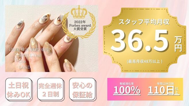 それぞれの可能性や夢を大切にするからこそ、ひとりひとりが最大限に活躍出来る場がSHELLNAILにはあります☆