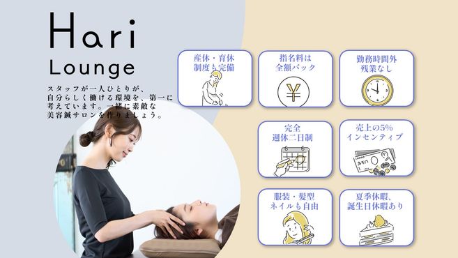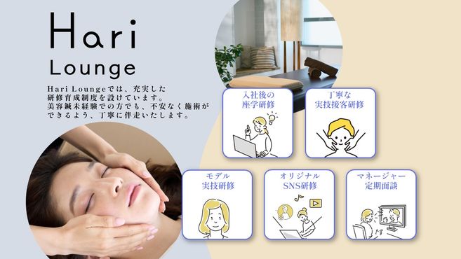 - 全国100店舗を誇る人気の美容サロンが"美容鍼専門サロン Hari Lounge (ハリラウンジ) "をNew Open!「美容鍼を日常に。」をコンセプトに掲げ【通いやすい価格】と【居心地の良いサロン空間】をご提供します。*美容鍼+小顔マッサージ¥3900*韓国発ララピールも◎小顔/むくみ/シワ/ほうれい線/たるみ/肌質改善/ニキビケアなどのお悩みを解消します!