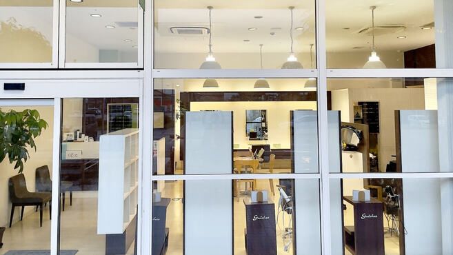 ホテルのラウンジを思わせるスタイリッシュなエントランス。店内はホワイトとブラウンの落ち着いた雰囲気です。「平和堂江南店」1階という好立地で幅広い層のお客さまがいらっしゃいます。