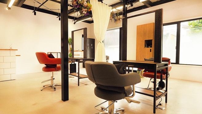 広々とした店内、セット面の間にはカーテンで仕切られて周囲の目線が気にならずお客様に寛いでいただけます。