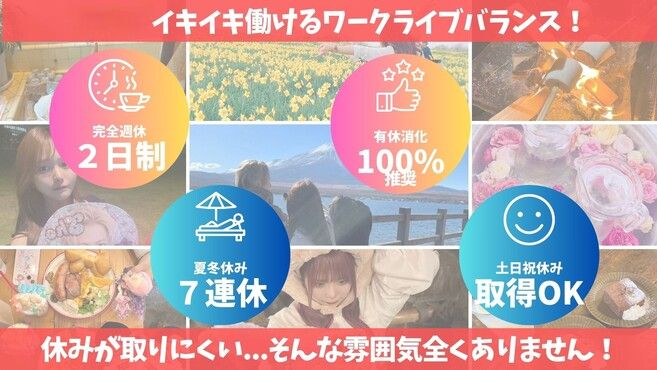 ④完全週休2日制、もちろん有給もしっかり取れる◎