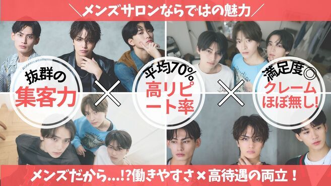 20代多数/30代多数/男性が多い/新規フリー客多数