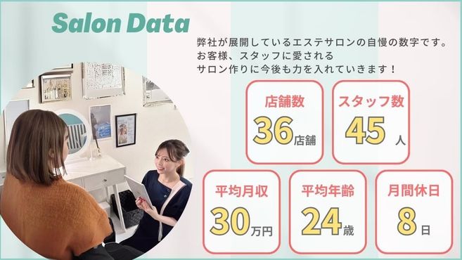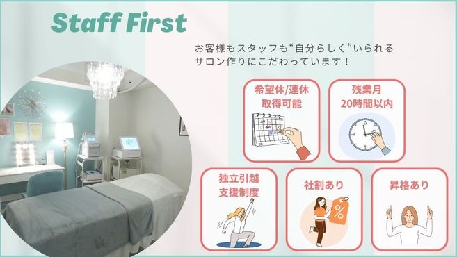 たくさんのお客様と共に成長し、結果を出していくやり甲斐も達成感も多く感じられるお仕事です。是非、一緒に誰からも愛されるエステティシャンを目指しましょう!