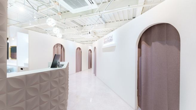流行りのくすみカラーでまとめた可愛い店内で、完全個室の施術ブースでゆったりお仕事♪