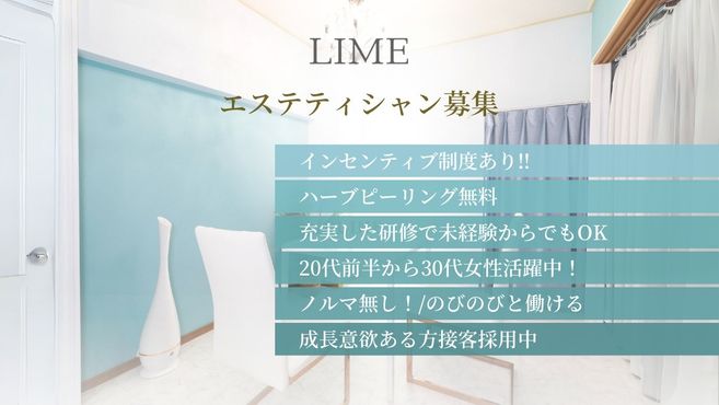 【若さと熱気で溢れる、成長中のハーブピーリングLIMEで一緒に働きませんか?】