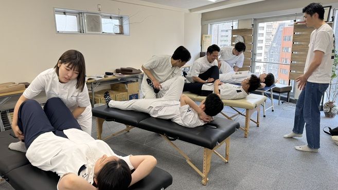 新入社員研修2か月間、社内勉強会、外部勉強会、教育デジタルコンテンツ、セラピストランク制度(年2回手技テスト・テストの成績により手当支給)