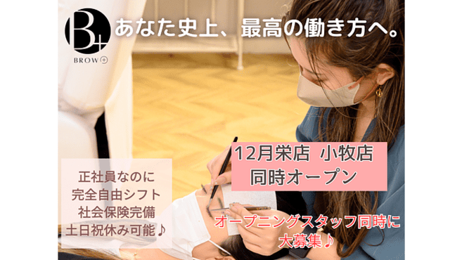 『BROW+』眉毛とまつ毛の専門店。全席個室空間で専門的なお仕事なのでゆったりと自分のペースでお仕事がしたい方にぴったりなサロンです♪