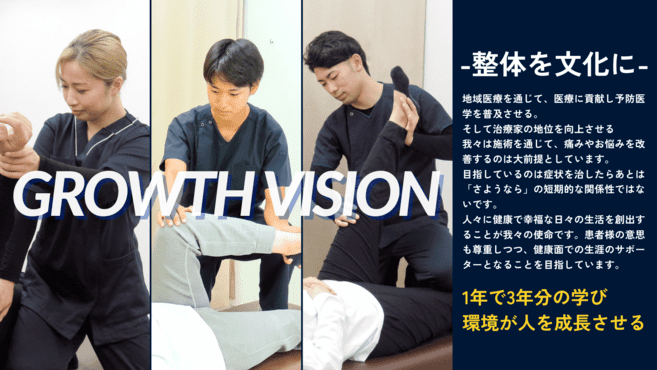 柔整鍼灸の技術を用いるのはもちろんですが、整体を用いて不調のでない身体づくりを目指していますので、整体スキルの高い方、辛さを取り除ける方が活躍しています。